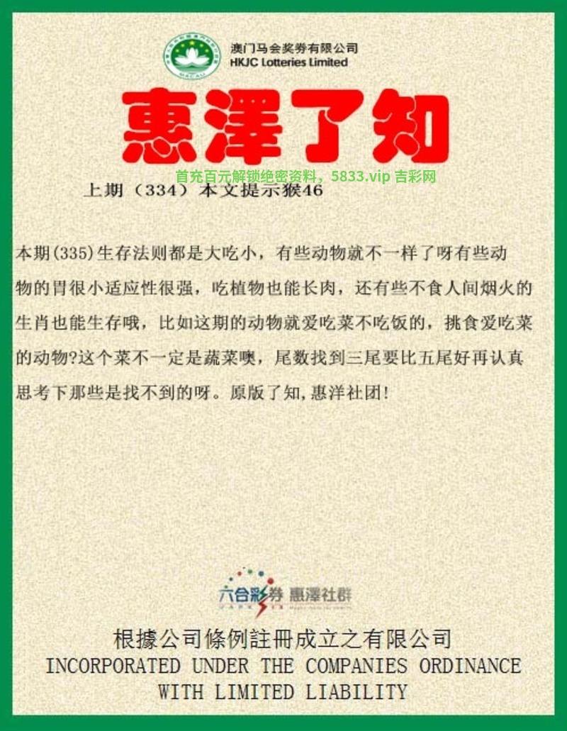 惠泽社群精品资料网所提供的内容、资料、图片和资讯,只应用在合法的澳门⑥合彩资料探讨,暂不适用于其它,外围博彩和使用。特此声明!